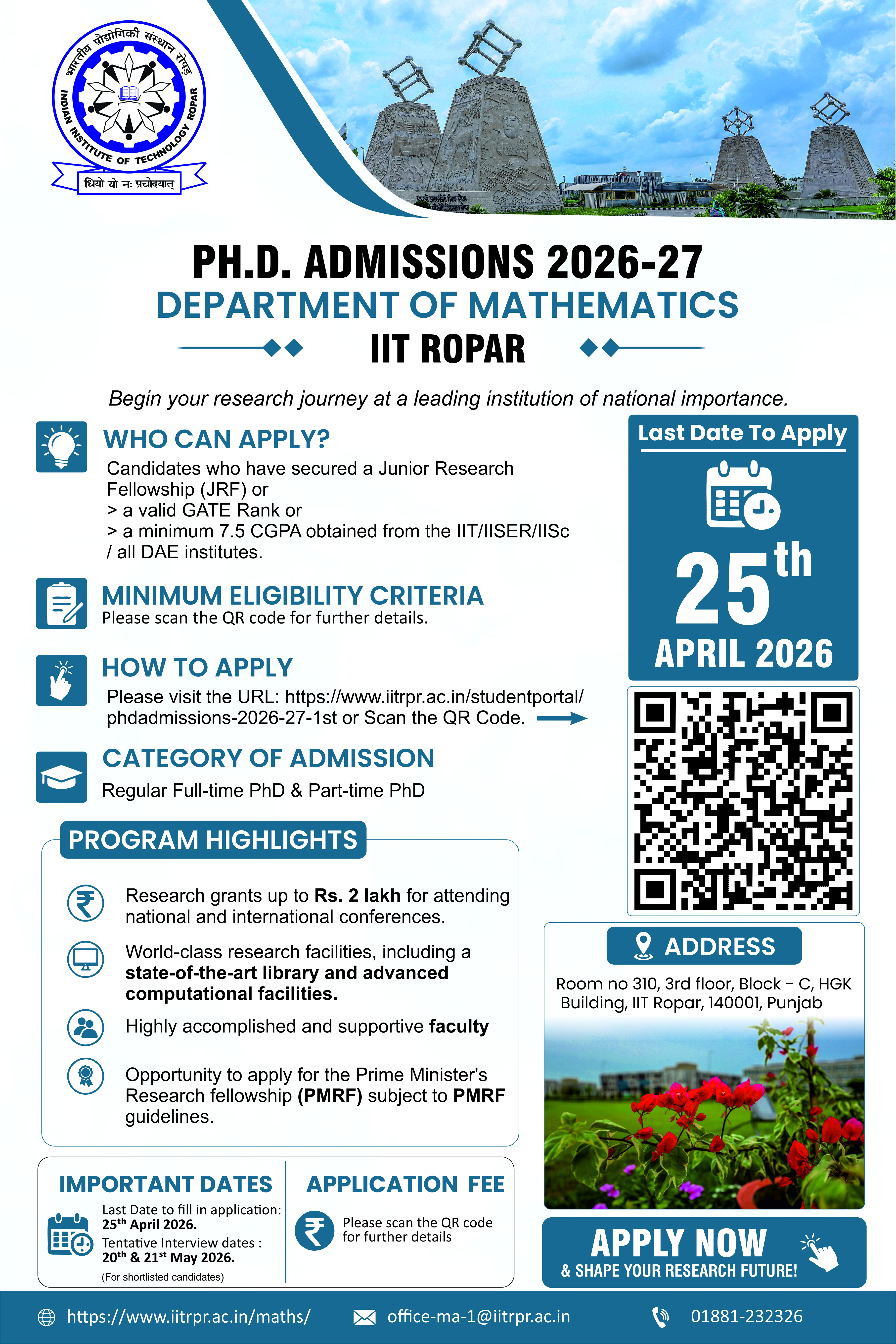 ii) M.Tech Admissions:- office-coap-1@iitrpr.ac.in